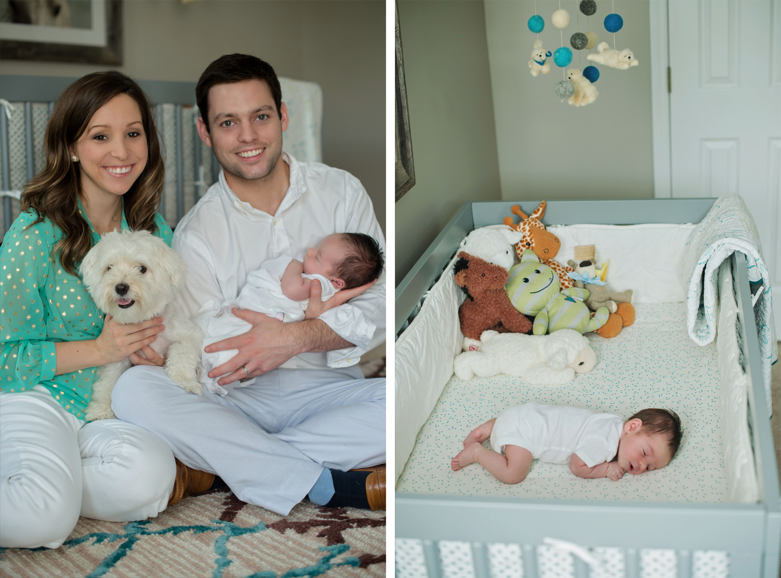 I may have been a lil extra excited to meet Miss Ellie Claire, mainly because I had already been sucked in by her cuteness through the photos I had seen of her, and well, her parents are just gorgeous! Ellie Claire is 6 weeks and so cuddly and perfect. Emily and Jacob had two fur babies before they brought this lil princess into the world, so she came with 2 built in body guards…or best buddies. Ellie’s nursery is gorgeous and I have a great feeling that Miss Ellie will be loved and cherished to the max. Hope you enjoy their special moments…